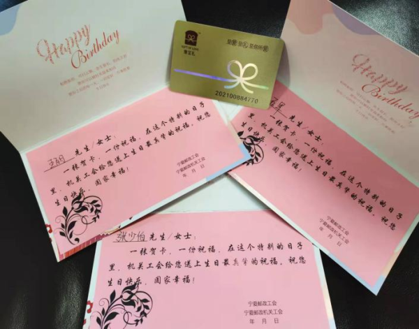 這兩天,職工收到賀卡之時,激動、開心、幸福的笑容溢于言表,深切的感受到區(qū)郵政工會大家庭的溫暖,感受區(qū)公司工會對員工的關(guān)愛,有職工說:“忙碌的工作和生活,自己都忘記了生日,單位還知道我的生日,這份意外的驚喜,讓我興奮不已,感受到了這其中的彌足珍貴!”