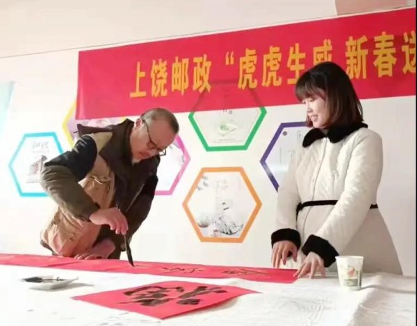 1月12日,上饒市郵政工會(huì)組織開(kāi)展了“虎虎生威新春送?!睍?shū)法筆會(huì)活動(dòng)。上饒市的書(shū)法家和郵政員工現(xiàn)場(chǎng)創(chuàng)作了寓意喜慶吉祥的春聯(lián)和福字。一行行俊逸的書(shū)法,一句句真誠(chéng)的祝福,寄托了大家辭舊迎新、接福納祥的美好愿望。