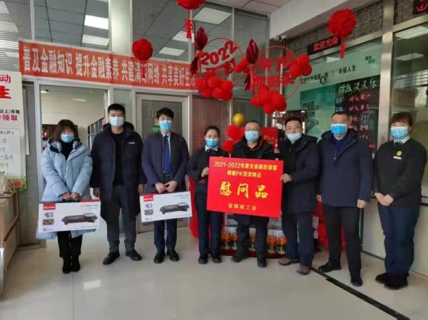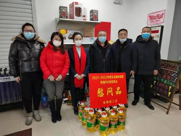 為了進(jìn)一步鼓舞一線網(wǎng)點的干勁和士氣,掀起新一輪跨賽PK熱潮。根據(jù)省郵政工會的相關(guān)要求,牡丹江市郵政工會提前與四個網(wǎng)點進(jìn)行了溝通,結(jié)合各網(wǎng)點的需求為每個網(wǎng)點購買了1000元的獎品,并在春節(jié)前配送到位,對市內(nèi)兩個獲勝網(wǎng)點開展了慰問。