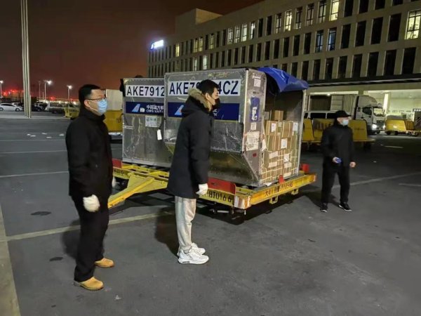 2022年1月28日,《北京2022冬奧會會徽郵票仿印徽章》和《北京2022冬奧會光柵明信片》兩款商函產(chǎn)品終于通過奧組委審核,成品即將從外阜印廠打印完成拉運(yùn)至北京并分發(fā)到各個銷售網(wǎng)點(diǎn)。為了確保各服務(wù)網(wǎng)店銷售進(jìn)場時限要求,商函新媒體中心的員工們,一直緊盯物流信息,當(dāng)監(jiān)測到貨運(yùn)包裹已經(jīng)抵達(dá)北京郵件綜合處理中心準(zhǔn)備分揀的時候,由于商函中心就在郵件綜合處理場地內(nèi),部門負(fù)責(zé)人當(dāng)即作出決定,指派員工直接到生產(chǎn)現(xiàn)場尋車?yán)?,?jié)省出分揀再投遞的時間,1月28日晚9點(diǎn),1萬件《北京2022冬奧會會徽郵票仿印徽章》率先全部拉回商函中心。