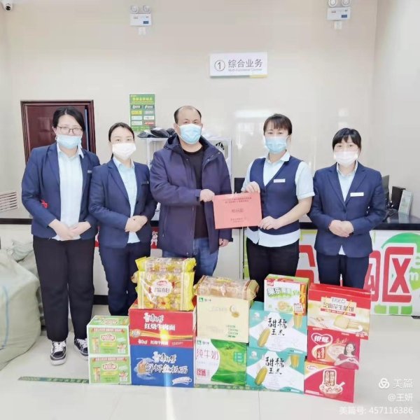 拜泉縣三道鎮(zhèn)營(yíng)業(yè)所在2021-2022年度全省郵政代理金融跨年度營(yíng)銷活動(dòng)第三輪分組PK賽中累積增額5173.69萬元,獲得縣分公司組第五組第三名的成績(jī),為鼓勵(lì)先進(jìn),省郵政工會(huì)和市郵政工會(huì)委托縣分公司工會(huì)對(duì)拜泉縣三道鎮(zhèn)營(yíng)業(yè)所全體人員進(jìn)行慰問。