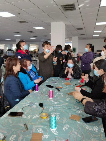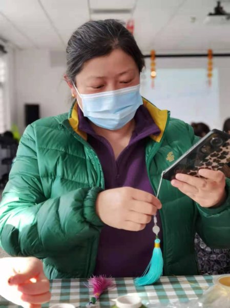 在近兩個小時的時間里,女同胞們認(rèn)真向老師學(xué)習(xí)著手工繩藝編織技藝,她們一個個細(xì)心制作,老師示范一步,大家跟著做一步。結(jié)繩看似簡單,其實(shí)每一個步驟都很關(guān)鍵,錯了一步就會失敗,幾個看似簡單的動作卻能編織出不同的繩結(jié),在老師不厭其煩的指導(dǎo)下,大家一步一步的反復(fù)摸索,現(xiàn)場氛圍很是熱鬧,來自各個支局互不相識的員工,從陌生到熟悉,從冷漠到搭把手,彼此之間相互交流,互相學(xué)習(xí),手法逐漸嫻熟起來!一個小時左右,一個個編織緊密的流蘇制作完成,神奇的繩藝加上裝飾品的搭配,顯示出濃濃的中國風(fēng)以它獨(dú)特的魅力征服了大家!難得的手工DIY機(jī)會讓大家樂在其中。“看我的流蘇完工啦”“我的也好了”聲音此起彼伏,女神們迫不及待迫不及待向在場的人展示自己的手工作品。