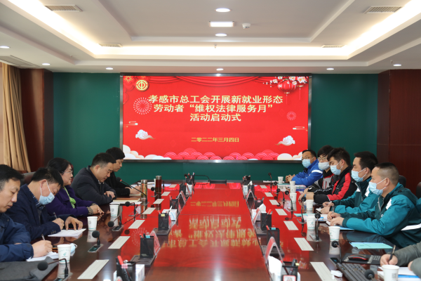 3月4日上午,孝感市總工會在孝感分郵政分公司,啟動開展新就業(yè)形態(tài)勞動者“維權(quán)法律服務(wù)月”活動,活動主題“遵法守法·攜手筑夢”服務(wù)新就業(yè)形態(tài)勞動者公益法律服務(wù)行動,市總工會副主席李朝霞參加,參加活動的有快遞協(xié)會、郵政公司、順豐速運、德邦快遞、中通速遞、韻達(dá)快遞20名快遞員。