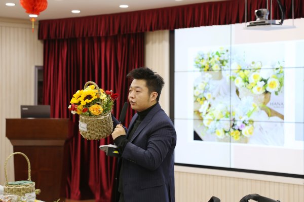 3月8日上午,在一片芬芳的花兒世界中, 插花藝術創(chuàng)作拉開帷幕。 活動特邀中插協(xié)高級花藝師李政超老師從花藝基礎知識、花藝色系搭配、花藝制作解析等方面,用各種鮮花向大家細致地講解了各類花型和每種插花表達的意境。
