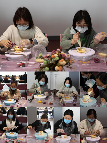 同時(shí),工會(huì)還邀請(qǐng)了西點(diǎn)師來(lái)帶領(lǐng)女神們自己動(dòng)手制作精美的蛋糕。從做蛋糕前的準(zhǔn)備到蛋胚的擺放,奶油的涂抹,再用新鮮水果裝飾,女神們現(xiàn)學(xué)現(xiàn)做,將自己的創(chuàng)意充分地表達(dá)在作品中,忙得不亦樂(lè)乎。最終,一份份精致的蛋糕作品從每個(gè)人手中脫穎而出,收獲了滿滿的快樂(lè)和驚喜。