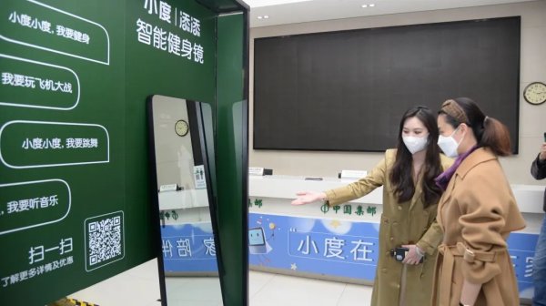 在中國郵政小度智能體驗(yàn)店里,設(shè)置了多種場景下的智能設(shè)備體驗(yàn)區(qū),可以體驗(yàn)到小度旋轉(zhuǎn)智能屏、小度降噪耳機(jī)、小度添添智能健身鏡等智能產(chǎn)品,用戶親臨工體郵局就可以用小度給家里的“老小孩”們打個(gè)電話或視頻,感受科技帶來的“穿越空間的陪伴”。