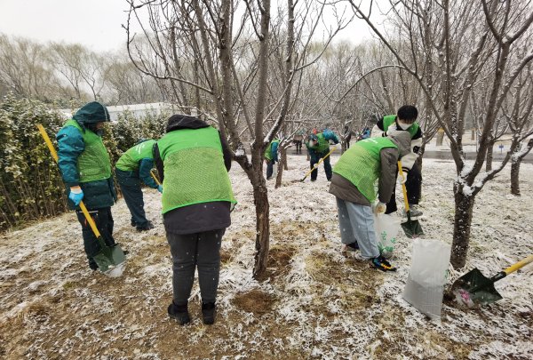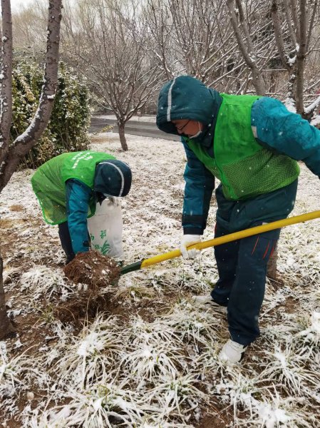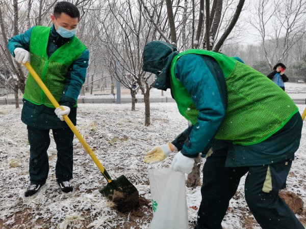 活動(dòng)開(kāi)始前,創(chuàng)新工作室領(lǐng)軍人、北京市勞模康智宣讀了“倡議書(shū)”,號(hào)召大家自覺(jué)履行公民植樹(shù)義務(wù),爭(zhēng)做共建美麗中國(guó)的志愿者和實(shí)踐者。 本次活動(dòng)的主要內(nèi)容是對(duì)樹(shù)木進(jìn)行撫育工作,康智創(chuàng)新工作室成員及工作室招募的在校大學(xué)生志愿者共同協(xié)作,大家熱情洋溢、干勁十足,三人成組、五人成團(tuán),有的揮鍬鏟土,有的為土地施肥,有的回填踩實(shí),大家分工明確、相互協(xié)作、銜接有序,充分體現(xiàn)了團(tuán)結(jié)、互助、協(xié)作的團(tuán)隊(duì)精神,雖然正值雨雪天氣,大家不懼風(fēng)雪,認(rèn)真完成了近40株樹(shù)木的撫育工作。