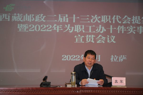 袁軍在講話中指出,區(qū)分公司黨委始終貫徹落實“以人民為中心”的發(fā)展理念,持續(xù)鞏固拓展黨史學習教育成果,推動學習教育走深走實,滿足職工群眾日益增長的美好生活需要,不斷提升職工群眾的獲得感、幸福感和安全感,在以職代會提案征集的企業(yè)民主管理基礎(chǔ)上,采取多種形式,充分征求職工群眾意見建議,結(jié)合西藏郵政2022年工作實際,深入研究,確定了2022年在全區(qū)郵政實施的“十件實事”項目。