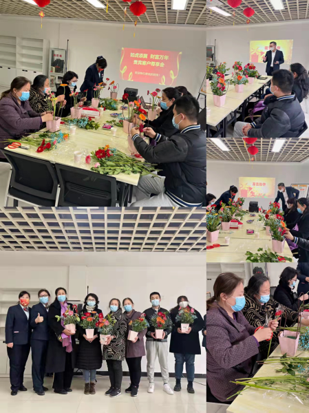 活動前各網(wǎng)點大堂經(jīng)理學習家居藝術花藝知識并制作PPT,在活動當天為客戶講解,先介紹了一些常見花種、插花基本花型和技巧,還給到場的每一位客戶提供了體驗插花過程的機會。現(xiàn)場氣氛熱烈,客戶們興致勃勃,一邊跟著學,一邊用心的插花,并隨時互動、探討,看著美麗的作品展現(xiàn)在眼前,客戶臉上都洋溢著開心幸福的笑容??蛻粼谳p松愉快的氛圍中,享受了制作花藝的工程,度過了休閑的時光。同時,理財經(jīng)理為大家講解家庭資產(chǎn)配置,并結合近期的市場形勢為每位客戶提供資產(chǎn)配置建議,得到了客戶的高度認可。