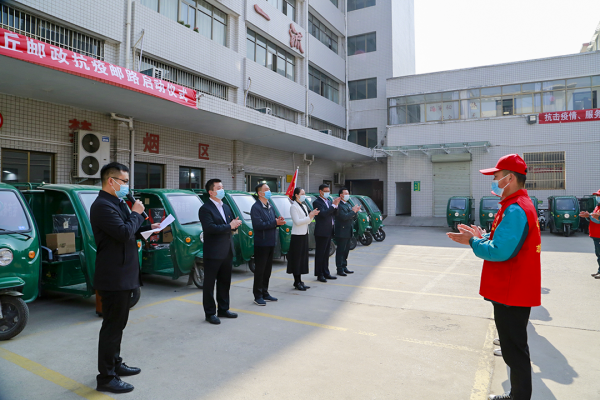 啟動(dòng)儀式上,商丘郵政疫情防控義務(wù)宣傳服務(wù)隊(duì)隊(duì)長喬金濤,接受商丘市郵政分公司紀(jì)委書記、副總經(jīng)理張豐崗授旗。梁園區(qū)區(qū)委常委、宣傳部部長、副區(qū)長趙向群,市郵政管理局黨組成員張磊出席活動(dòng)。