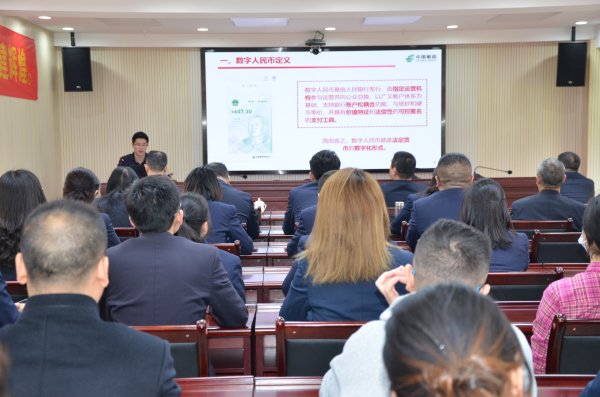 為進(jìn)一步促進(jìn)數(shù)字人民幣業(yè)務(wù)發(fā)展,提升全員新業(yè)務(wù)熟悉度及其拓展能力,4月19日中午,渝中分公司利用休息時間舉行了數(shù)字人民幣知識培訓(xùn)。分公司領(lǐng)導(dǎo)班子全體成員,各職能部室、專業(yè)公司工作人員及基層網(wǎng)點業(yè)務(wù)骨干70余人參加了培訓(xùn)。
