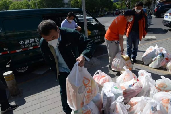 5月1日晚,朝陽(yáng)區(qū)郵政分公司接到朝陽(yáng)區(qū)商務(wù)局的緊急通知,連續(xù)三天協(xié)助物美超市將市民所訂的物品配送到小區(qū)。因?yàn)檫@一超市地處管控地區(qū),無(wú)法正常處理市民的訂單,區(qū)商務(wù)局做出了馳援工作安排。服務(wù)市民就是命令,更是郵政企業(yè)的職責(zé)。