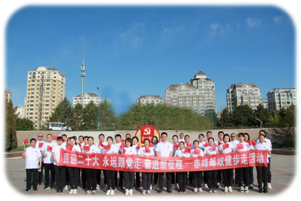 陽(yáng)光明媚四月天,春風(fēng)拂面展笑顏。為豐富機(jī)關(guān)職工的業(yè)余生活,有效推動(dòng)廣大干部職工以更加健康的體魄、更加飽滿(mǎn)的精力、更加積極的狀態(tài)投入到本職工作中去,在“雙節(jié)”即將到來(lái)之際,赤峰市郵政工會(huì)于4月29日上午,組織機(jī)關(guān)職工開(kāi)展“喜迎二十大、永遠(yuǎn)跟黨走、奮進(jìn)新征程”健步走活動(dòng)。
