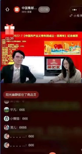 與以往不同,本次直播在首尾兩次植入了1分鐘的百萬莊共青團(tuán)郵局簡介《前進(jìn)中的共青團(tuán)郵局》,以及2分鐘的《中國共產(chǎn)主義青年團(tuán)成立100周年紀(jì)念宣傳視頻》,助力“中國集郵”品牌和“共青團(tuán)郵局”子品牌在新郵發(fā)行熱度期的正向傳播。