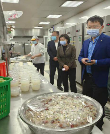 為保證駐守崗位的近兩千人用餐,5月3日深夜返崗?fù)局芯o急聯(lián)系食堂的供貨商,配送肉蛋、蔬菜、大米、面粉等食材。每天盡全力保證一日四餐、近萬(wàn)人次的用餐需求,除了食材充足不斷供,背后還有不斷摸索、完善的管理經(jīng)驗(yàn):為保證餐食足量不浪費(fèi),根據(jù)系統(tǒng)數(shù)據(jù)掌握自有人員就餐人數(shù),保持菜品質(zhì)量、品種不受影響;為保證外包人員的就餐秩序,食堂與各外包公司建立微信群,提前報(bào)備人數(shù),以公司為單位有序分發(fā)預(yù)先裝好的餐盒,指定專人領(lǐng)取,分區(qū)域就餐,有效避免人員聚集。