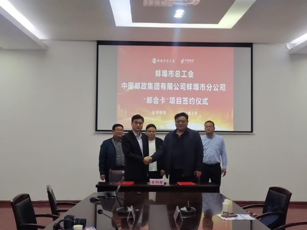 經(jīng)過一個多月的認真籌備,4月8日下午,蚌埠市總工會與蚌埠市郵政分公司正式簽署《郵會卡項目合作協(xié)議》。