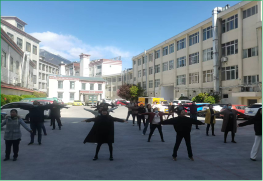 ?。▓D為:拉薩市郵政分公司工間操)