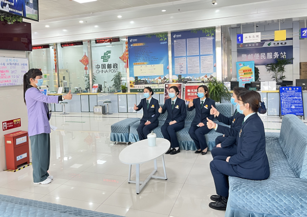 為進(jìn)一步提升窗口服務(wù)質(zhì)量和水平,促星級(jí)網(wǎng)點(diǎn)標(biāo)桿建設(shè),幫助特殊人群體驗(yàn)便捷、優(yōu)質(zhì)的金融服務(wù),近期,宿州郵政四星級(jí)窗口淮海路支局特邀聾啞學(xué)校專家利用晨會(huì)時(shí)間,對(duì)該網(wǎng)點(diǎn)人員開展了廳堂服務(wù)手語(yǔ)培訓(xùn)。