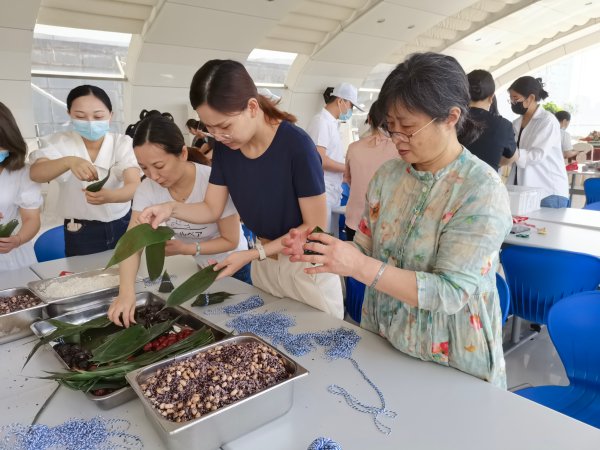 端午節(jié)將至,為弘揚中國傳統(tǒng)文化,激發(fā)廣大職工愛國、愛企情懷和奮發(fā)向上、干事創(chuàng)業(yè)熱情,6月1日上午,鄭州市分公司在五樓職工餐廳組織開展了“情寄米粽,共度端午”包粽子活動,市分公司副總經理、工會主席程亮蒞臨活動現(xiàn)場?;顒又?,工會提前把準備好的糯米、花生、蜜棗、粽葉、粽線等食材分組擺放整齊,由包粽子師傅現(xiàn)場教學,一時間粽葉舞動,粽線穿梭。卷粽葉、裝糯米、填蜜棗、纏粽線,一道道程序下來,一個個作品逐一呈現(xiàn),隨著實踐次數增多,大家包粽子水平由生疏到熟練,粽子也從“千奇百怪”到“有模有樣”,燦爛笑臉洋溢在每個人的臉上,歡聲笑語飛滿了活動現(xiàn)場。此次活動開展,不僅使參加活動職工親身體驗了端午的文化習俗,豐富了業(yè)余文化生活,更是在集體的溫暖中度過了一個有意義的傳統(tǒng)節(jié)日,凝聚了企業(yè)向心力