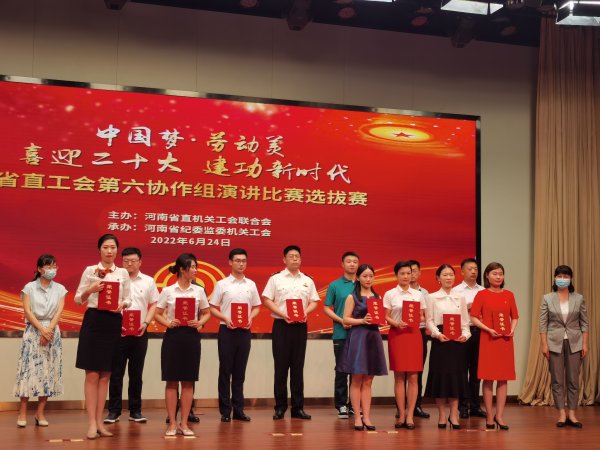 6月24日,河南省省直工會組織“中國夢·勞動美--喜迎二十大 建功新時代”省直機關(guān)職工演講比賽。鄭州郵區(qū)中心一線職工代表張工參加此次比賽,經(jīng)過激烈角逐,最終榮獲優(yōu)秀獎。