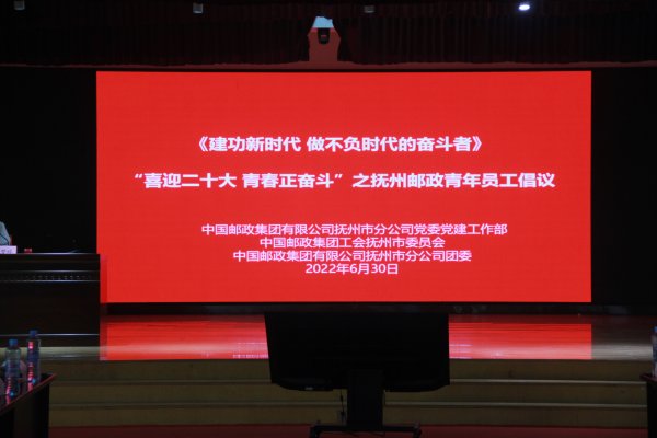 在黨的二十大即將召開的喜慶時(shí)刻,為進(jìn)一步激勵(lì)全市廣大青年員工不負(fù)韶華,愛崗敬業(yè),勇于擔(dān)當(dāng),2022年6月30日上午,撫州郵政黨工團(tuán)聯(lián)合舉辦《建功新時(shí)代 做不負(fù)時(shí)代的奮斗者》——“喜迎二十大 青春正奮斗”之撫州郵政青年員工倡議啟動儀式,來自全市12個(gè)縣(區(qū))分公司各崗位的43名青年員工代表、4名優(yōu)秀青年員工代表及市分公司黨建部、工會、人力部、市場部、財(cái)務(wù)部、綜合辦公室的部門負(fù)責(zé)人、市分公司領(lǐng)導(dǎo)共同見證了這一莊嚴(yán)和激動人心的時(shí)刻。