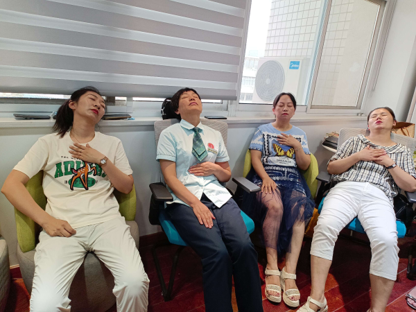 活動第一個環(huán)節(jié)是由老師組織的“破冰游戲”,互相介紹身邊的同事,在心理老師的指導下,減壓活動在輕松愉悅的氛圍中順暢進行?,F(xiàn)場迅速活躍起來,進入到輕松的活動氛圍中,笑聲連連。 第二個環(huán)節(jié)由老師帶著大家做了冥想心理減壓法。職工們“閉著眼睛進行深思”,專注于自身的呼吸和意識,感知生命每一瞬間的變化。在專注于一呼一吸的同時,記住自身最理想的狀態(tài),讓自己沉浸在拋開萬物的真空狀態(tài),找到心靈的平衡。冥想過程中的腦波會變得安定、心情逐漸變得平和、全身肌肉變得放松。