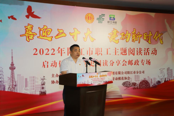 為進(jìn)一步推動(dòng)員工以書為友、與書相伴,大力營(yíng)造“愛讀書、讀好書、善讀書”的文化氛圍,6月28日下午,陽(yáng)江市總工會(huì)、陽(yáng)江市郵政分公司聯(lián)合舉辦“喜迎二十大 建功新時(shí)代”2022年職工主題閱讀活動(dòng)暨黨史閱讀分享會(huì)郵政專場(chǎng)活動(dòng)。