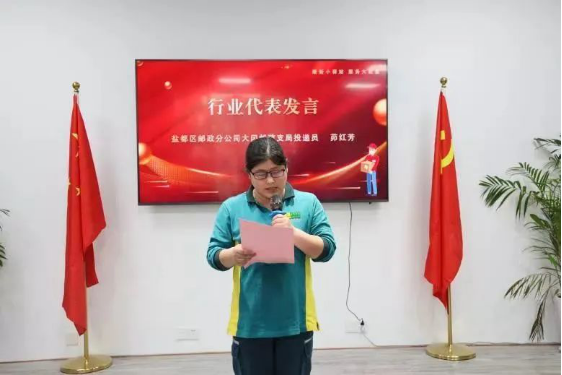 新當(dāng)選鹽城市勞模的鹽都分公司大岡支局投遞員茆紅芳作為行業(yè)代表,從堅定理想信念、嚴(yán)守行業(yè)規(guī)范、服務(wù)發(fā)展大局、主動融入基層四方面發(fā)表感言。暖“新”驛站以轄區(qū)內(nèi)各郵政網(wǎng)點郵愛驛站為載體進(jìn)行打造,驛站內(nèi)配備微波爐、冰箱、充電、凈水器、書籍、電視機(jī)等,為廣大快遞小哥等戶外工作者提供休息、補(bǔ)給等溫馨服務(wù)。暖“新”驛站不僅為快遞小哥等戶外工作者帶來生活工作上的便利,還進(jìn)一步強(qiáng)化資源共享、引領(lǐng)行業(yè)自律、反映行業(yè)訴求,推動行業(yè)依法依規(guī)生產(chǎn)經(jīng)營、健康有序規(guī)范發(fā)展。