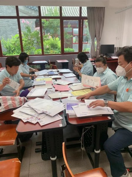 接到任務(wù)后,支局立即組建工作小組,成立了由支局長帶頭,包括營業(yè)、營銷、寄遞等骨干人員組成的北京三十五中中招錄取通知書收寄服務(wù)團隊,同時準備好了各種收寄物品,包括特快專遞封套、EMS詳情單等,按照之前規(guī)定的流水作業(yè)模式投入到緊張的工作中。在收到錄取通知書郵寄名址后,營銷主管馬上打印收寄單對名址信息進行核對,提前做好數(shù)據(jù)準備。之后,又分成兩人小組分別對帶有學(xué)生姓名的北京市高級中學(xué)學(xué)校招生錄取通知書和帶有學(xué)生序號的致2022級高一新生家長的一封信、致學(xué)生的一封信三份材料進行精準核對、封裝、貼簽……