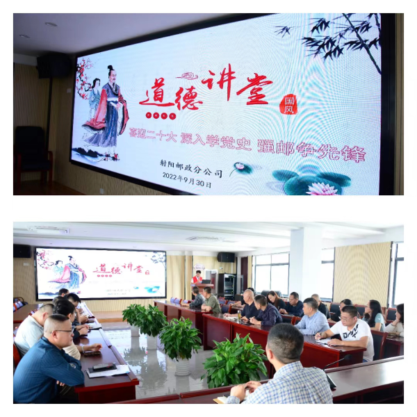 為迎接黨的二十大勝利召開,射陽分公司、工會以“喜迎二十大、深入學(xué)黨史,強郵爭先鋒”為主題,特地舉辦了一期“喜迎二十大”專題道德講堂。在道德講堂上,大家唱紅歌、學(xué)黨史、講變化、談感慨。3名工會道德宣講員分別講解了祖國的變化、郵政的變化、自家生活的變化,使大家深受鼓舞,信心倍增,切身感受到在黨的領(lǐng)導(dǎo)下的幸福生活,并紛紛表示要以昂揚的斗志投入到郵政旺季生產(chǎn)工作中去。