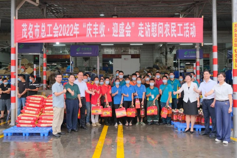 9月30日,茂名市總工會(huì)以“慶豐收·迎盛會(huì)”為主題,深入茂名市分公司開(kāi)展走訪慰問(wèn)快遞企業(yè)農(nóng)民工活動(dòng)。市總工會(huì)、市郵政管理局、茂名市分公司聯(lián)合慰問(wèn)小組冒雨為農(nóng)民工快遞員(農(nóng)村戶籍外包攬投人員)送上米、油、面等一批慰問(wèn)品。