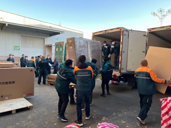 近期,華為公司提前雙11預(yù)購, 打破了雙11的原有節(jié)奏。 任務(wù)重、裝卸難,投送更加困難, 物流分公司吹響支援“集結(jié)號(hào)”, 全體齊心奮戰(zhàn),周末便放棄休息, 全力支援大屏投送工作。