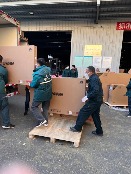 汗水浸濕了他們的衣衫,N95口罩下全都是汗滴,就這樣,同志們相互間鼓勵(lì)著說:“擼起袖子加油干,你干我干大家一起加油干!”相互打氣! 支援的同事們在分公司領(lǐng)導(dǎo)的帶領(lǐng)下,干勁十足!僅11月5日華為智慧屏共計(jì)派完成派送148件。