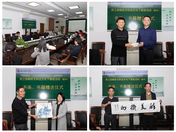 省郵政文聯(lián)的會(huì)員們?yōu)獒橹菔蟹止編?lái)翰墨丹青、書籍作品,并在現(xiàn)場(chǎng)開(kāi)展創(chuàng)作活動(dòng),揮毫?xí)鴮懶聲r(shí)代衢州郵政精神,潑墨渲染衢州郵政風(fēng)貌,為衢州市、縣各分公司贈(zèng)送一幅幅生動(dòng)的書畫作品,衢州市分公司總經(jīng)理俞亮接受了省郵政文聯(lián)的捐贈(zèng)。