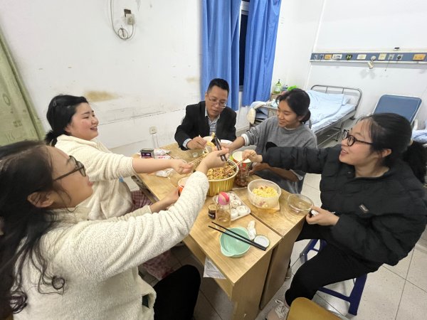 11月15日,院領(lǐng)導(dǎo)為留宿在醫(yī)院的醫(yī)護(hù)人員們送來了火鍋食材。當(dāng)日工作結(jié)束后,大家開始忙活起來,一起摘菜、洗菜、切菜、分菜,齊心協(xié)力做好一頓熱騰騰的飯菜。以院為家的郵政人克服困難、堅(jiān)守崗位,齊心協(xié)力打好疫情殲滅戰(zhàn)。