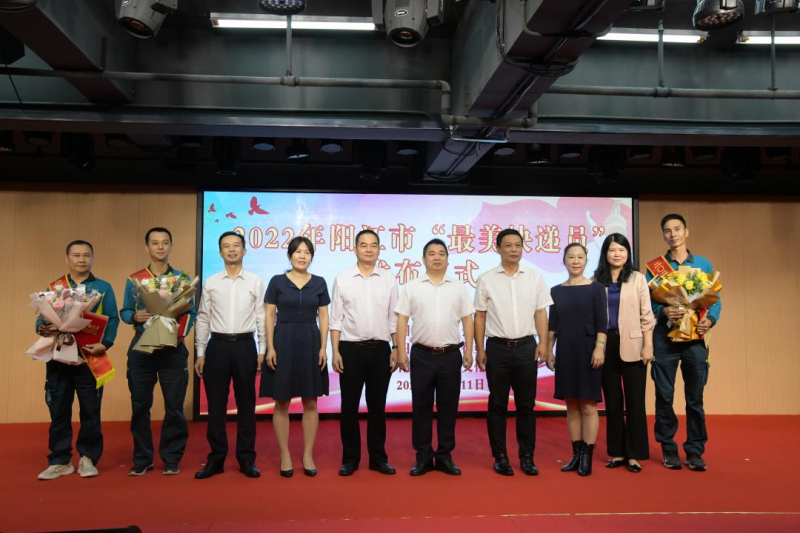 11月11日上午,陽江市“最美快遞員”發(fā)布儀式在市總工會大樓演藝廳隆重舉行,陽江市分公司龐宗碩、項國立、黃會等3位同志榮獲2022年陽江市“最美快遞員”稱號。陽江市人大常委會副主任、市總工會主席馮周海出席本次儀式并為獲獎快遞員頒獎及合影。