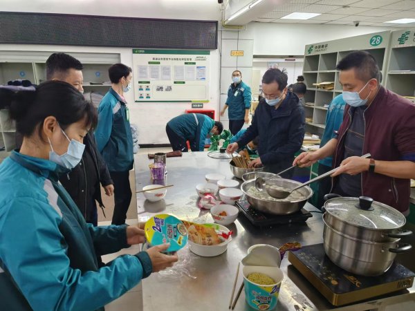 為解決大院內(nèi)員工的生活問題,渝中區(qū)分公司工會積極行動,在封控時間來臨之前,及時組織了4名食堂工作人員,趕赴上清寺職工食堂,同時聯(lián)系供應(yīng)商配送食材運到食堂。食堂按日準備早中晚餐,解決了大院內(nèi)封控員工的生活問題,提升了員工生活質(zhì)量。