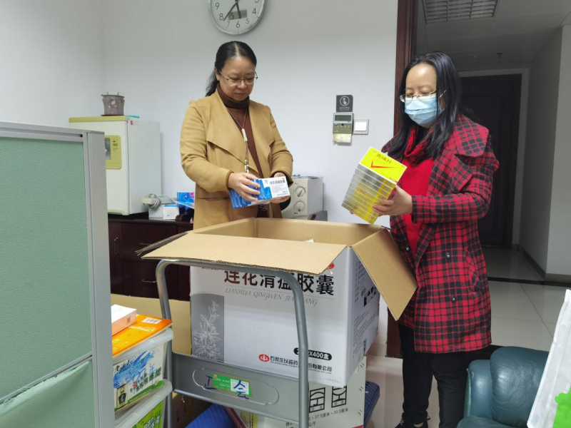 中山市分公司工會副主席胡明帶頭聯(lián)系當(dāng)?shù)厮帍S,為基層單位搶購緊缺藥品,第一時間在辦公室做分配