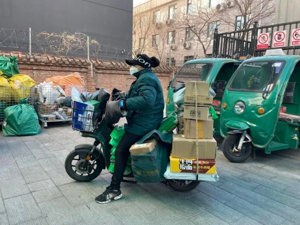最引人注目的是一位女投遞員,在她墨綠色的電動(dòng)車上從后座到前梁依次堆滿了成箱的水果、兩大包文件、成袋的大米,前面的車筐還裝了不少小件快遞?!耙?yàn)槲覀兺哆f的片區(qū),不少都是胡同、四合院,三輪車無(wú)法進(jìn)去,最好用的就是兩輪電車,女投遞員們可以說(shuō)是拋家舍業(yè),她們不少人,手和腳都凍壞了?!标愄m穎感動(dòng)地說(shuō)。