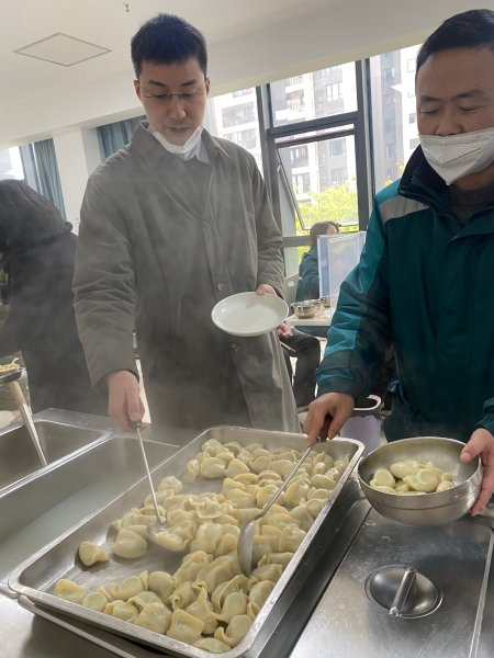 “伙伴們辛苦了!今天是臘八節(jié),明天就是元旦啦,工會(huì)給大家準(zhǔn)備了一些臘八粥和手工水餃,讓大家暖心過節(jié)!”12月30日中午,北碚區(qū)分公司工會(huì)主席張萬波在食堂給取餐的員工話起了家常。