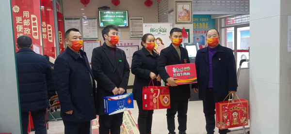 春節(jié)將至,年味愈濃。為保障廣大人民群眾的用郵需求,同時(shí)度過一個(gè)歡樂祥和的新春佳節(jié),春節(jié)期間很多員工還在工作崗位上繼續(xù)忙碌,他們也成為了領(lǐng)導(dǎo)心中最重要的掛念。1月20日,分公司領(lǐng)導(dǎo)班子成員共分成三個(gè)組,由邱開成總經(jīng)理帶隊(duì),分別對(duì)紫水郵政所、九龍山郵政所、麻柳郵政所和武裝押運(yùn)保安班等進(jìn)行了慰問,看望了奮戰(zhàn)在一線的員工們,對(duì)他們的辛勤工作表示感謝,并向他們及家人致以新春的祝福和節(jié)日的問候。