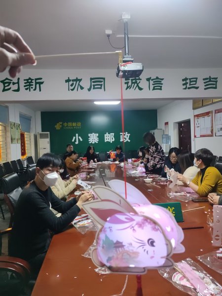 活動(dòng)的形式多種多樣,小寨分公司有手工做燈籠活動(dòng)、猜燈謎活動(dòng);長安分公司組織了“擊鼓傳兔”“愛的抱抱”“夾球比賽”趣味活動(dòng),以及猜燈謎、套圈、投壺等傳統(tǒng)活動(dòng);長安分公司還將元宵送到一線網(wǎng)點(diǎn),各網(wǎng)點(diǎn)自行開展形式多樣的活動(dòng);楊凌分公司因地制宜,在院子里裝飾了一面風(fēng)車墻,準(zhǔn)備了180條燈謎,職工們在燈謎中徜徉,紛紛打卡留念......