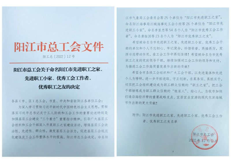 日前,陽江市總工會印發(fā)了《陽江市總工會關(guān)于命名陽江市先進職工之家、先進職工小家、市優(yōu)秀工會工作者、優(yōu)秀職工之友的決定》,陽江市分公司陽東塘坪、陽春春灣、陽西新圩等3個支局工會小組榮獲“陽江市先進職工小家”,陽江市分公司黨委書記、總經(jīng)理馬志雄,陽東區(qū)分公司黨委書記、總經(jīng)理曾春意等2名同志榮獲“陽江市優(yōu)秀職工之友”稱號,工會譚慶蕊榮獲“陽江市優(yōu)秀工會工作者”稱號。