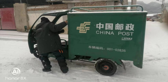 在舊縣支局服務道界,用戶這樣說:“外面下著這么大的雪,只有郵政的服務風雪無阻,給你們點贊!”(北京郵政工會)
