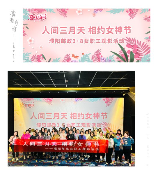 為慶祝美好節(jié)日,共度美好時光,濮陽市郵政分公司于3月8日下午組織女職工觀看《滿江紅》愛國電影,開展以“人間三月天 相約女神節(jié)”為主題的集體觀影活動,豐富職工業(yè)余文化生活,傳承紅色基因,弘揚愛國主義精神。