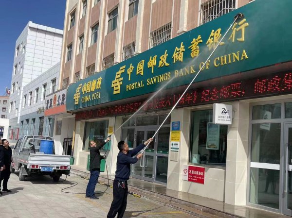 3月21日一早,在市分公司工會(huì)的統(tǒng)一安排部署下,辦公室及市場(chǎng)營(yíng)銷部人員開著車載著水箱及噴水槍,長(zhǎng)桿拖把前往格爾木市各營(yíng)業(yè)網(wǎng)點(diǎn)。到達(dá)網(wǎng)點(diǎn)后,大家開始對(duì)門頭進(jìn)行整體沖刷,清洗過(guò)的門頭牌匾煥然一新,干凈靚麗,清洗現(xiàn)場(chǎng)一翻繁忙勞碌的景象。