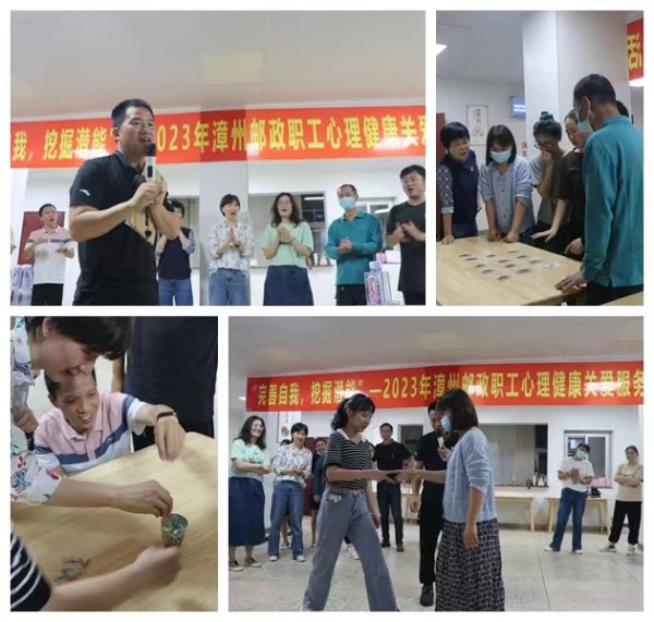 為進一步提升職工綜合心理素質(zhì),促進員工身心健康全面發(fā)展,落實好“我為群眾辦實事”工作,在省郵政工會的大力支持下,漳州郵政工會于4月20日下午開展了一場主題為“完善自我,挖掘潛能”職工心理健康關(guān)愛拓展活動。通過破冰分組,大家感受“壓力主要是來自于對事物不了解,很茫然,“找到解決問題的辦法后,這種感覺消失了”;在“贏走”游戲環(huán)節(jié),大家知道“逆向思維有時也是解決問題的好方法”;在“達芬奇密碼”游戲環(huán)節(jié),大家認為這正如當下的“走千訪萬”工作,面對當前的市場環(huán)境,要采取不同的方案克服困難來達成;在“杯海人生”游戲環(huán)節(jié),大家驚訝于裝滿水的小杯是如何容納下180只回形針而不溢的,感嘆著自己在實踐中解決問題的耐心;在“激情節(jié)拍”游戲環(huán)節(jié),大家齊心協(xié)力達成老師近乎不可能的要求,贊賞著彼此強大的潛能。整個活動過程中,大家認真參與,真情投入,積極互動,相互喝彩,奮勇爭先,心理素質(zhì)和抗壓能力得到了進一步提升,也掌握了一些化解壓力的小技巧。來自營業(yè)、分揀、攬投、內(nèi)務和管理等不同崗位50多名職工參加了本次拓展活動。(福建郵政工會)