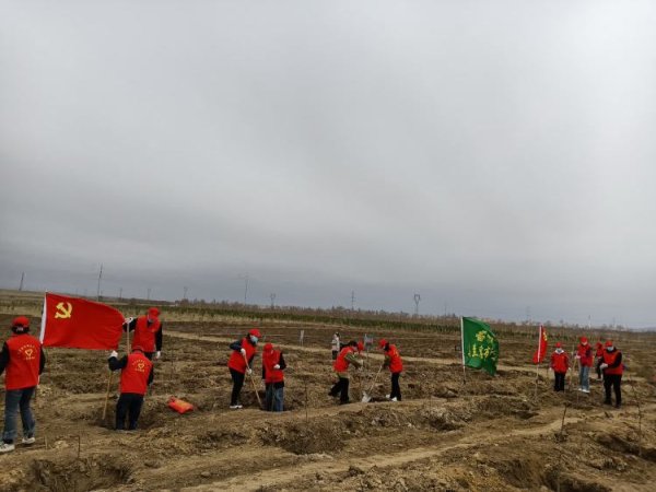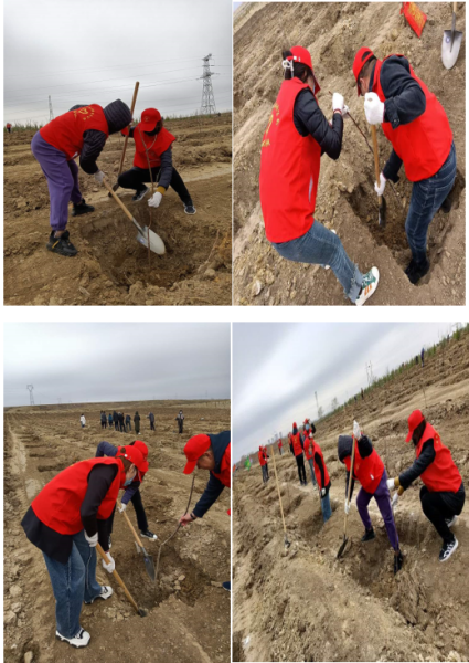 在植樹現(xiàn)場,到處都是忙碌的身影和勞動的歡聲笑語,大家在林業(yè)局技術人員的示范指導下,或兩人一組,或三五成群,分工協(xié)作、配合默契,揮锨鏟土、扶苗填坑、填平樹坑、踩實壓緊,大家干勁十足,隨著鐵锨一鏟鏟落下,一株株新栽下的樹苗在春風里昂然挺立、整齊劃一,經(jīng)過一下午的辛勤勞動,90多株沙棗樹在和煦的春風中正式“安家落戶”。