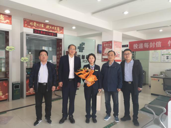 鹽城郵政工會(huì)主席陳儀一行來(lái)到響水張集支局、速遞部戴莊路攬投部、亭湖公司大慶西路支局,慰問(wèn)“全國(guó)五一勞動(dòng)獎(jiǎng)?wù)隆鲍@得者任婷婷、“省五一勞動(dòng)獎(jiǎng)?wù)隆鲍@得者陳國(guó)勇、“全國(guó)郵政系統(tǒng)先進(jìn)個(gè)人”王曉麗等勞模先進(jìn)代表,為他們送上省郵政工會(huì)的慰問(wèn)品及市郵政工會(huì)定制的鮮花,感謝他們?cè)诳缒甓雀?jìng)賽及各項(xiàng)經(jīng)營(yíng)發(fā)展中做出的表率,勉勵(lì)他們充分發(fā)揮勞模創(chuàng)新工作室的平臺(tái)作用和勞模先進(jìn)的示范引領(lǐng)作用,發(fā)揚(yáng)勞模精神、勞動(dòng)精神、工匠精神,在日常的工作中帶動(dòng)身邊的人共同進(jìn)步,形成勞模先進(jìn)群體,為郵政事業(yè)作出更大的貢獻(xiàn)。