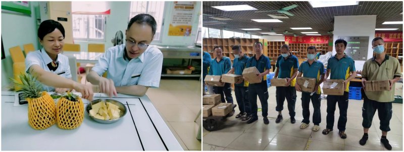 “來一口清香的菠蘿,讓你的夏天更加美味”。5月正是菠蘿成熟時,廣州市分公司響應(yīng)省公司幫扶鄉(xiāng)村振興、強(qiáng)力推進(jìn)農(nóng)產(chǎn)品基地建設(shè)的號召,為員工們發(fā)放了約25000斤“徐聞菠蘿”,用帶著陽光味道的新鮮時令水果感謝在不同崗位上奮力拼搏的郵政人。